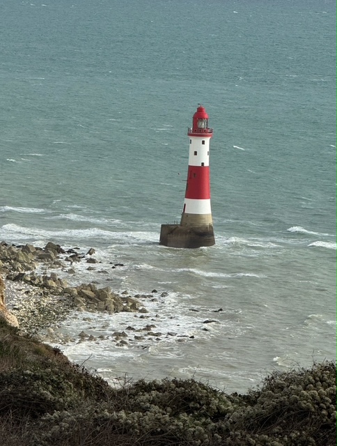 Just below the cliffs sits the iconic red-and-white striped Beachy Head Lighthouse, built in 1902. It stands proudly offshore, battling waves year-round. During low tide, locals sometimes walk around the base (though this is strongly discouraged due to unpredictable tides).